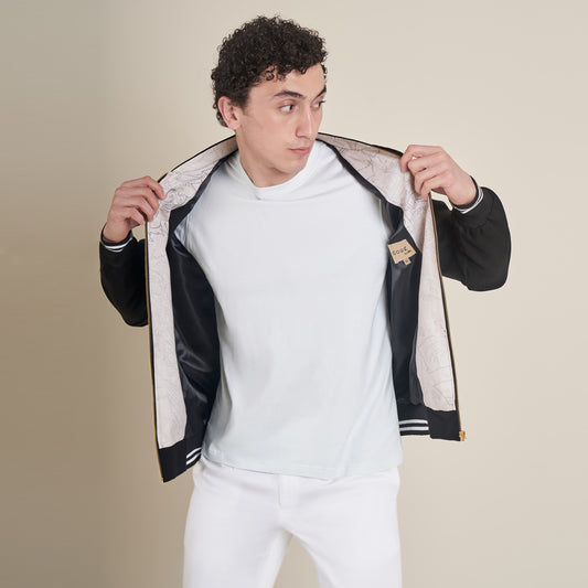 The Story – Black Regular Cotton Linen Bomber Jacket