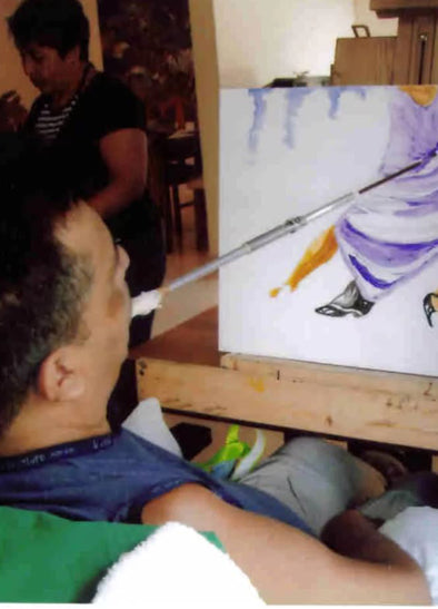 on 15 July 1963 at the Luz Castro de Gutierrez hospital. At the age of 7 he went to the José Maria Bernal School; he was a hyperactive child. His father let him work for him and had him learn carpentry. Sadly, his father died soon after in an accident. Despite this, he dedicated himself to carpentry, set up his own workshop and made a lot of furniture. An accident completely turned his life around. He nevertheless tries to see the positive side in things and has found the way to fine arts and to painting which he really enjoys. He has received lessons from other disabled friends and is going to attend an