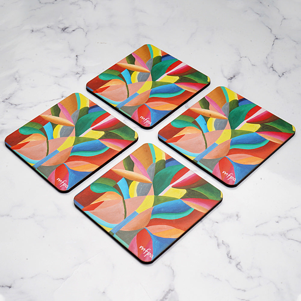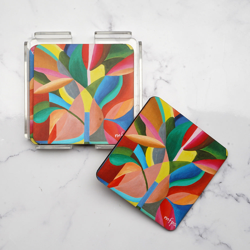 Elevate your everyday moments with Floral Symphony coasters. Featuring segments of a beautiful painting of flowers, these coasters bring the nectar of art into your life. Subtle, delicate, and strong, they’re the perfect accessory to stir up any fashion look. Add a touch of elegance and magic to your decor with these mesmerizing coasters.