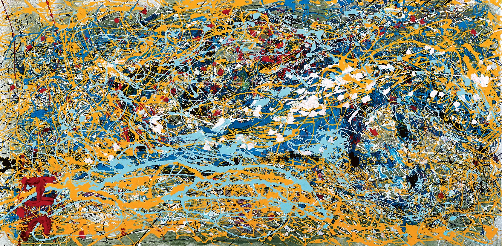 The canvas pulses with life, an electrifying storm of color that jolts you to attention. The blues are turbulent waters, the oranges and reds are flames licking at the edges of control, and the yellows are bursts of energy that can’t be contained. There’s a wildness here, an untamed force that sweeps you up in its chaotic embrace. It’s a rush of adrenaline, a surge of passion that leaves you breathless, reminding you that life is meant to be lived on the edge, in the full spectrum of emotions.