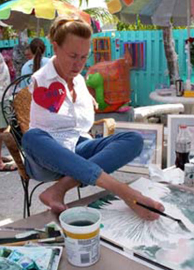 Ann Harrison-May was born in Pennsylvania, USA. She is different in that she was born with no arms, and has learned to use her feet for everything she does. Ann began painting with oils and her favorite medium – watercolor. She studied art in High School and at Edison Community College earning an Associate in Fine Arts Degree. She has been in social work most of her adult life; coupling that with her love of art, has led her to working with the disabled.