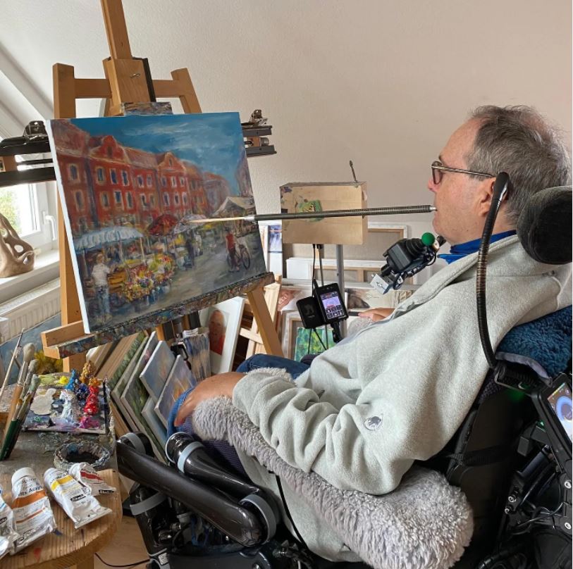 until he suffered paraplegia as the result of a swimming accident in 1976, which left him completely paralysed. From 1978 onwards he began to learn to perform many tasks with his mouth, including his first attempts at painting. The landscapes of his native Brandenburg are among the preferred subjects in the work of Thomas Kahlau. Buildings and figures are also included in his oil, watercolour and acrylic colour paintings.
