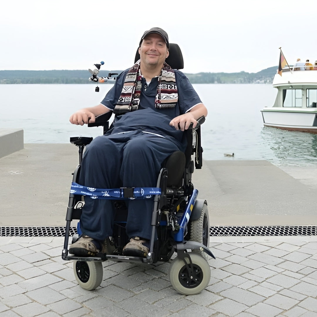 Lars Höllerer attended primary and secondary school and then a two-year business school. In Mai 1991, three months after he had completed his military service, he had a grave motorcycle accident. He has been paraplegic ever since. At the rehabilitation centre he taught himself to paint with his mouth. Subsequently he enrolled at an art academy where he found inspiration for his artistic work. Lars mostly creates expressionist paintings and modern or abstract paintings, working in oils on canvas. These works are partly painted over ink. His landscapes and still lives are frequently created based on the technique of naive painting.