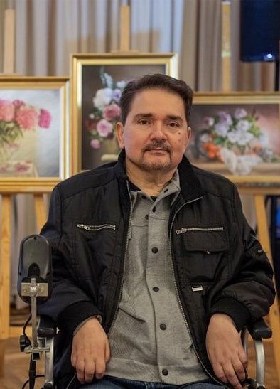 Walery was born in Denisovka, Kazakhstan, in June 1965. He suffered a cervical spinal injury after jumping from a hill into a river and has been confined to a wheelchair since then. To escape from his loss of mobility, he began writing with a pen in his mouth. Later he also hit on the idea of painting and drawing in this way. Consequently, he taught himself to paint with his mouth. A colourfully illustrated bible for children inspired him to portray