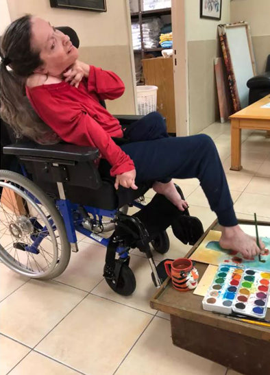Mrs Revital Schelubsky was born on 10 March 1964 in Tel Aviv. The footpainter suffers from cerebral paralysis and cannot use her arms. She has been painting with two toes since 1988 and is taking lessons from Mrs Dita Goldstein. Mrs Schelubsky has participated in several exhibition. Her hobby is music.