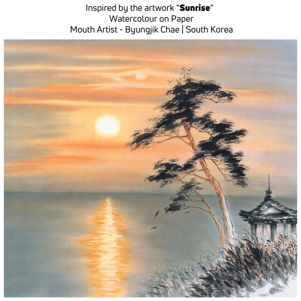 Chae was born in April 1952 in Sang-Joo, South Korea. As a competent businessman, he took over the management of two firms however in 1988, a car accident made him a quadriplegic. He made his first attempts at mouth painting in November 1993, when he heard of the existence of the MFPA. He took painting lessons from a professional art teacher for two years and has loved painting eversince. He favors painting in watercolors and is inspired by the nature and culture around him which he often uses as subject for his painting.