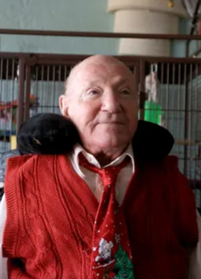 Jean Michalski was born on 10 December 1936 in Belgium. At the age of ten, Jean climbed a utility pole together with friends and sustained severe burn injuries that both his arms had to be amputated. Soon afterwards he learned to write and paint holding a pen between his teeth. He perfected his skills and received a Scholarship from the Association in 1956.