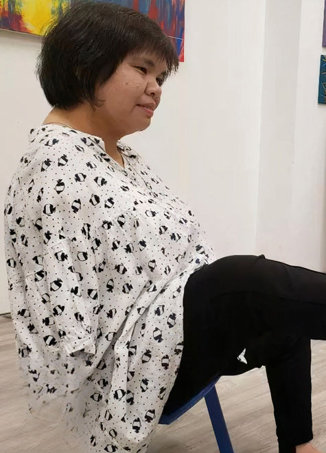 Lo Pui Yung was born with defective limbs, so she had to learn how to live without a pair of healthy hands. Despite her physical setback, Lo Pui Yung is an optimistic and articulate person, possessing an admirable passion for learning. Together with the dexterity of her feet, Lo Pui Yung managed to learn