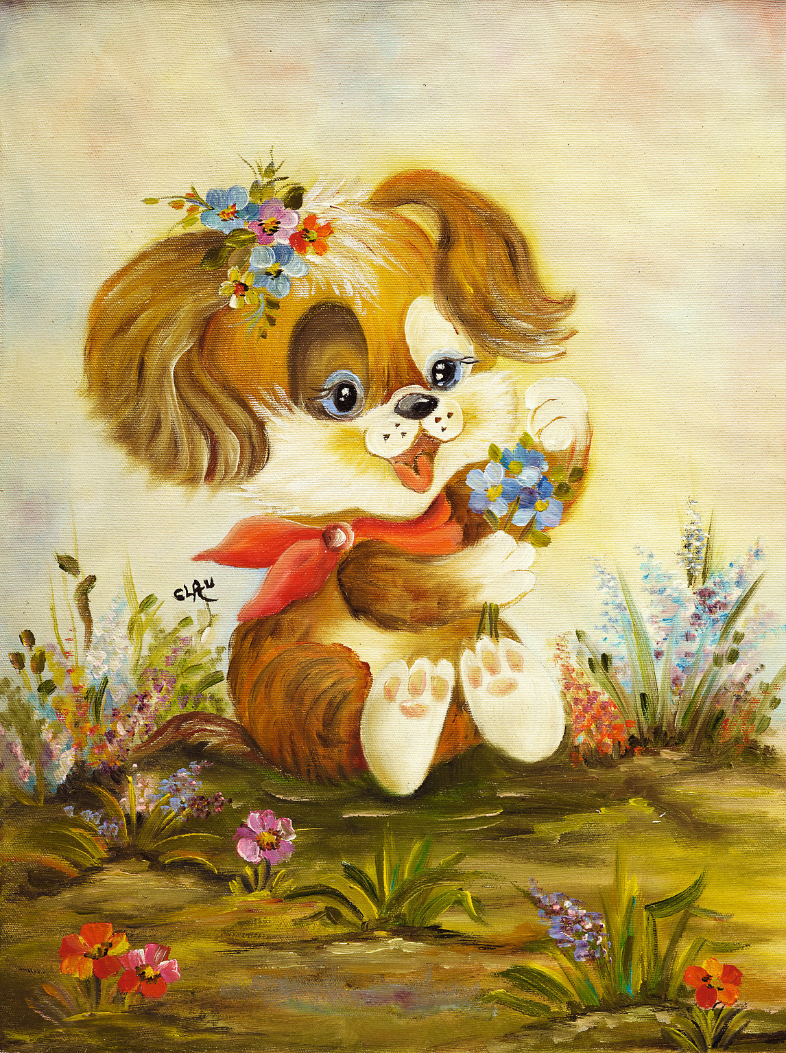 This enchanting cartoon dog, adorned with blossoms, seems to have stepped straight out of a fairytale. The vibrant colors and exaggerated proportions invite us to embrace the fantastical, while the puppy’s joyful expression serves as a reminder to cherish the lighter, more playful moments of life.