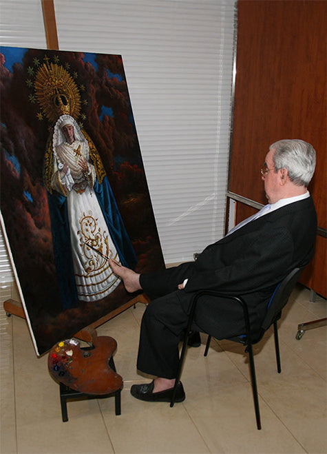Manuel suffered from polio at the age of seven months resulting in the paralysis of his arms and hands. For this reason he was compelled as a small boy to use his feet for doing various activities. He felt a painter's calling from a very early age and further developed his artistic techniques in painting and drawing both on his own initiative and also at the School of Art in Seville. Drawing and painting have remained his favourite activities. His work has brought him numerous awards and honours over the years.