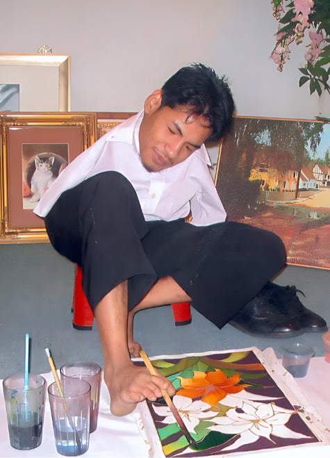 Born on January 25, 1989, in Kelantan, Malaysia, Mohd Khairuddin Bin Che Rani came into the world without arms. From a young age, he mastered the art of using his feet for daily tasks and soon extended this skill to painting and drawing. Currently, he is honing his craft in art and batik painting at the Pusat Latihan Perindustrian & Pemulihan (PLPP) in Bangi. Mohd Khairuddin’s talent has led him to participate in numerous exhibitions, including the “Market Place for Creative Art” at the 6th World Islamic Economic Forum held at the Kuala Lumpur Conference Centre in May 2011. His journey is a testament to his resilience and artistic dedication.