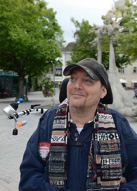 Lars Höllerer attended primary and secondary school and then a two-year business school. In Mai 1991, three months after he had completed his military service, he had a grave motorcycle accident. He has been paraplegic ever since. At the rehabilitation centre he taught himself to paint with his mouth. Subsequently he enrolled at an art academy where he found inspiration for his artistic work. Lars mostly creates expressionist paintings and modern or abstract paintings, working in oils on canvas. These works are partly painted over ink. His landscapes and still lives are frequently created based on the technique of naive painting.