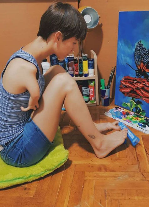 deformation of extremities, with hands or feet implanted in the trunk). Since a very young age Dejana has been using her left foot to draw and