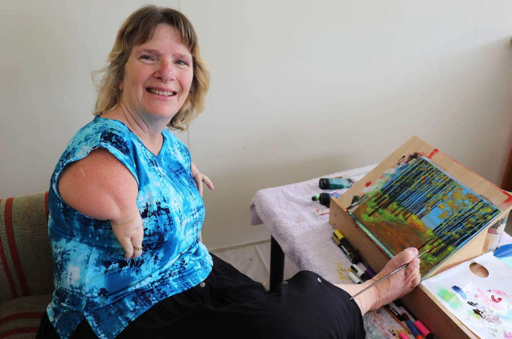 Patricia Jackson, born in Townsville, Australia, on 23 August 1962, was born without arms due to her mother’s use of thalidomide during pregnancy. Her heart and lungs were also severely impacted, leading to frequent hospital stays and multiple surgeries throughout her childhood. Despite these challenges, Patricia learned to walk at 12 years old. A passionate advocate for inclusion, she began painting in 2015 and has since used her art and personal story to inspire others. Patricia’s hobbies include fishing, swimming, and photography. She visits schools and institutions across Australia, aiming to foster understanding and empathy, encouraging a world where differences are celebrated and discrimination is eradicated.