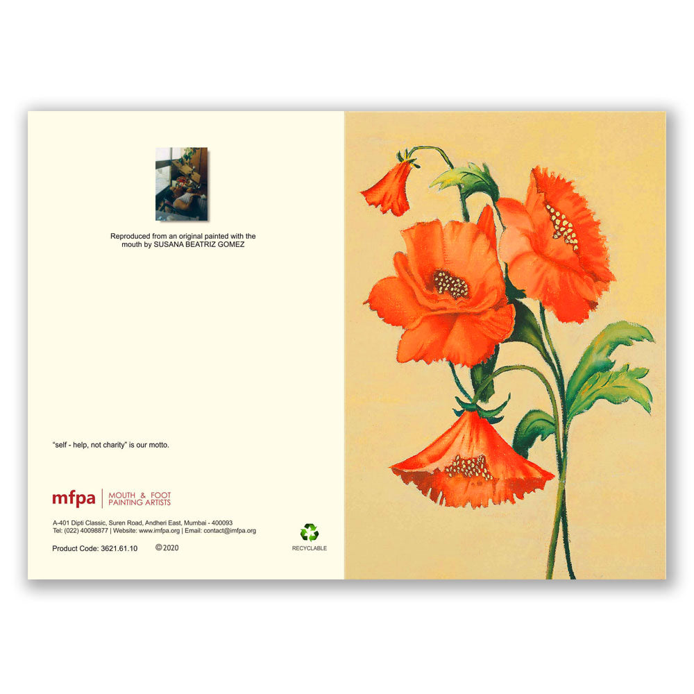 Birthdays, anniversaries, festivities, for all sorts of occasions this subtly beautiful card can do wonders. Featuring the painting of our artist, few sincere words might make someone smile.