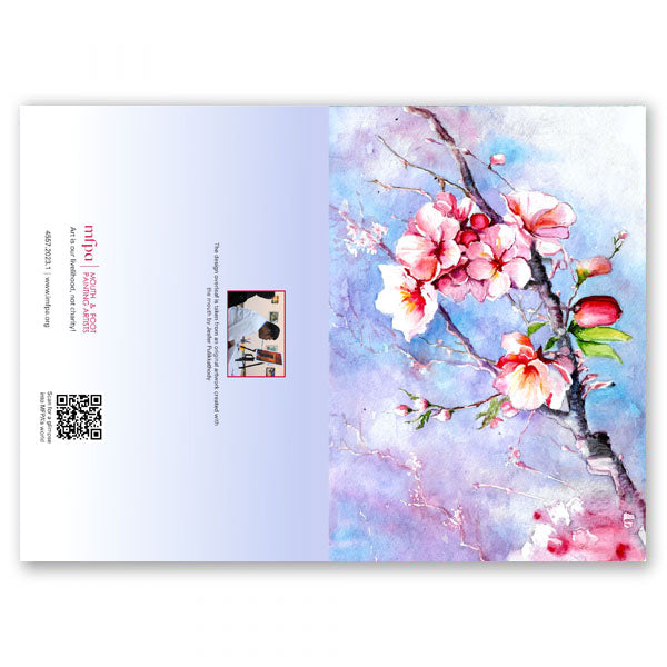 Birthdays, anniversaries, festivities, for all sorts of occasions this subtly beautiful card can do wonders. Featuring the painting of our artist, few sincere words might make someone smile.