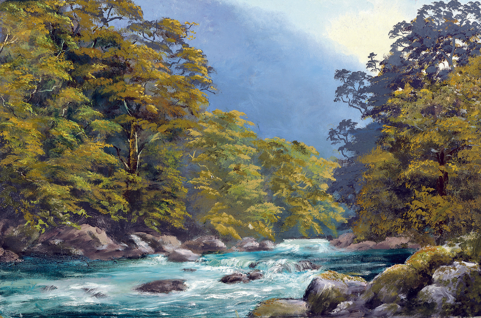 A vivid portrayal of a river winding through a lush forest, this artwork celebrates the harmony of nature. The artist uses short, textured strokes for the trees, adding depth to their foliage, while the water is rendered with smooth, fluid strokes, embodying motion and serenity. The piece radiates life and tranquility, reminding me of the rhythm and beauty of untouched wilderness. It speaks to the quiet yet powerful essence of flowing water carving its path.