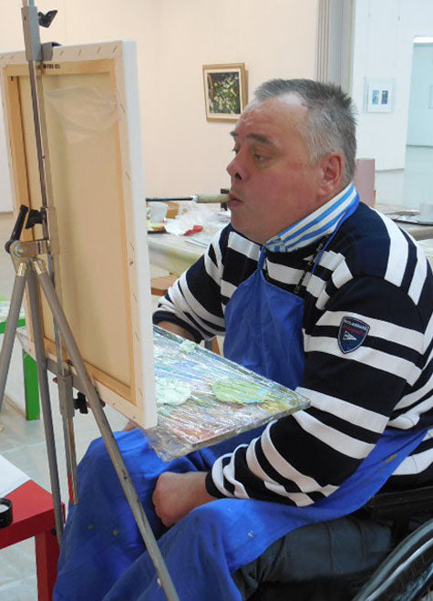 While studying to become an electrical engineer, Benjamin fell off a cherry tree, resulting in him becoming tetraplegic. As cultural director of the “Association of Tetraplegic Persons” in Slovenia, among other things, he organised painting courses