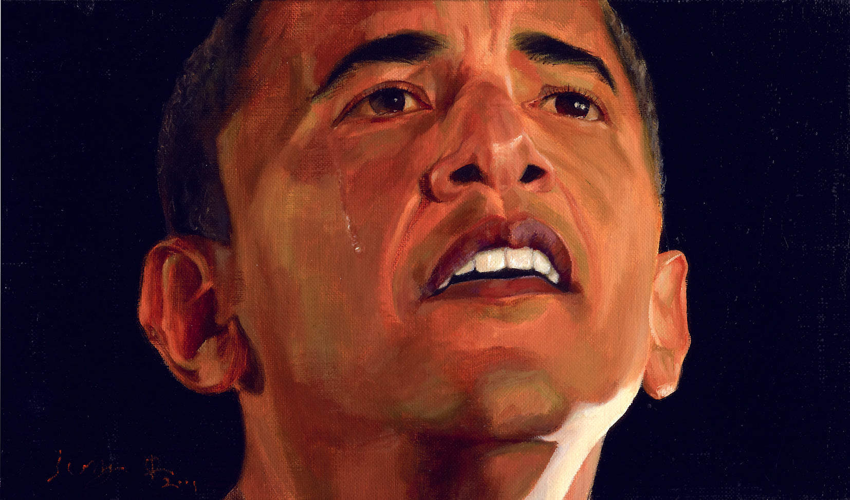 This portrait dives deep into human vulnerability, portraying a leader with tears held in stoic composure. The artist’s attention to detail in every wrinkle, every shadow, adds depth to his expression. Broad, sweeping strokes along his brow and cheeks give a sense of weight, emphasizing the burden he carries. The subtle glistening of a tear draws you in, making you ponder the man behind the public facade, the personal anguish rarely seen by the world.