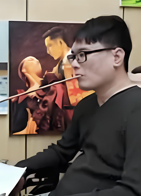 Chia-Syun Chang’s life took a drastic turn in 2004 when a workplace accident left him paralyzed from the neck down. Born on February 1, 1981, in Taichung, his world shifted after the accident, but it didn’t dampen his spirit. Inspired by seeing artists paint using their mouths, Chia-Syun decided to try mouth painting himself. What began as a self-taught effort blossomed into a passion, especially after receiving private lessons from renowned teacher Lin Shwu-Chyn. Now, Chia-Syun paints stunning portraits of humans, animals, and landscapes, expressing his deep connection to the world through oil paints. Since 2020, he’s proudly served as an Associate Member of MFPA, inspiring others with his talent and resilience.