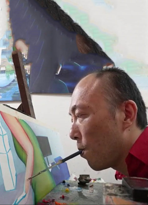 Zi-Ming Xie was born on November 3, 1973, in Shanghai, suffering from congenital cerebral paralysis, which left him with total paralysis of all four extremities. In 1983, he first showed an interest in mouth painting and taught himself the craft. With remarkable determination, he made rapid progress. Zi-Ming has already contributed to several group exhibitions in Shanghai.